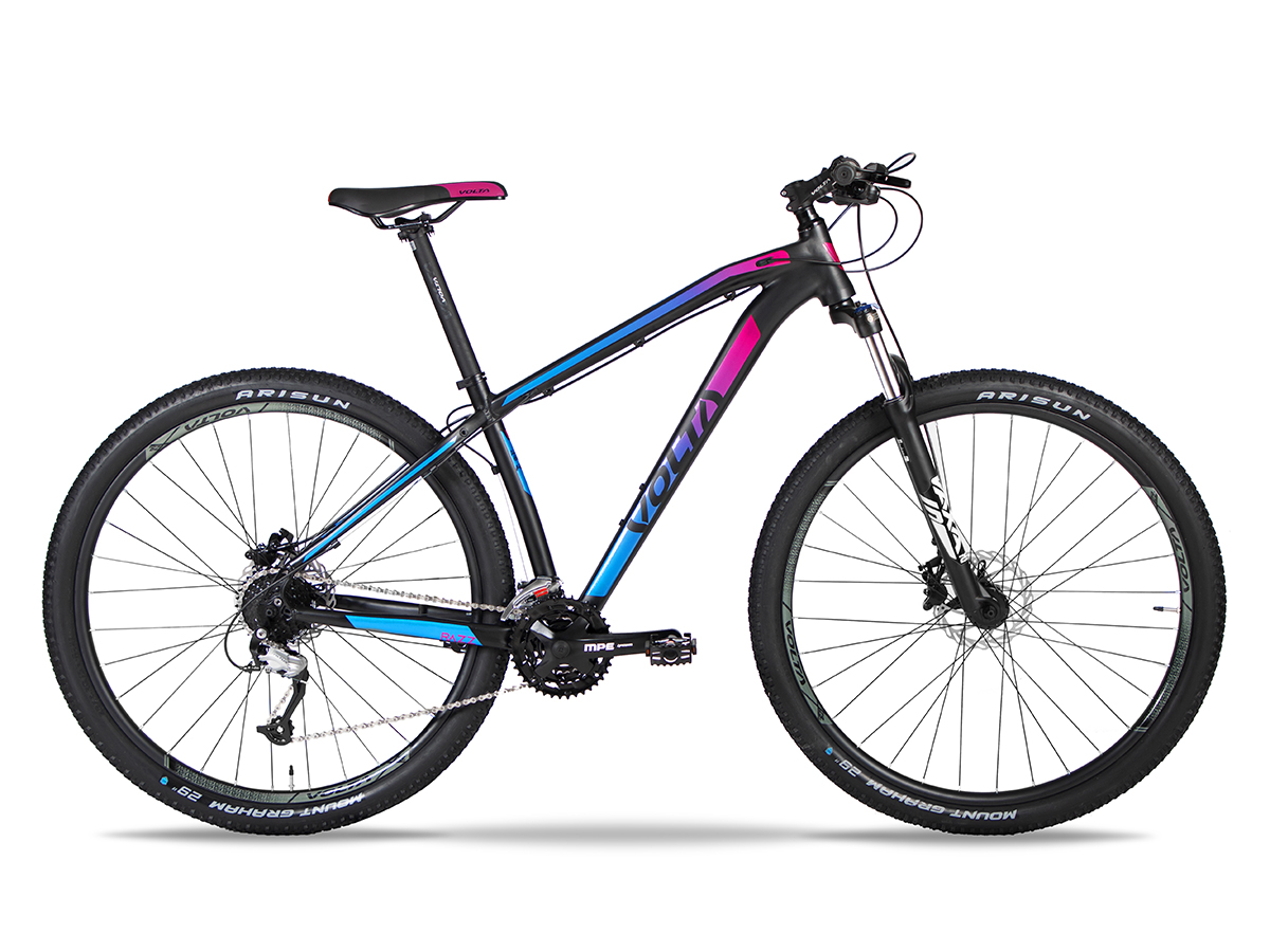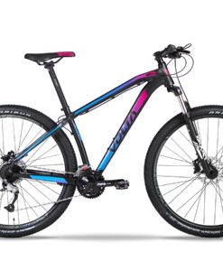 Equipada con 24 velocidades, cuadro de aluminio, cableado interno, horquilla con bloqueo de suspensión y frenos hidráulicos.